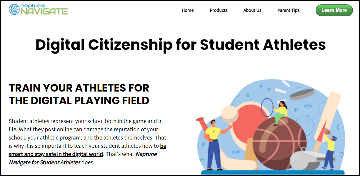 Neptune Navigate for Student Athletes is designed to help teach your student athletes how to be smart and stay safe when they are in the digital world. It’s a 4-part online course specifically designed for athletes, and can be quickly and easily implemented at your school. To learn more, please check out our website HERE.